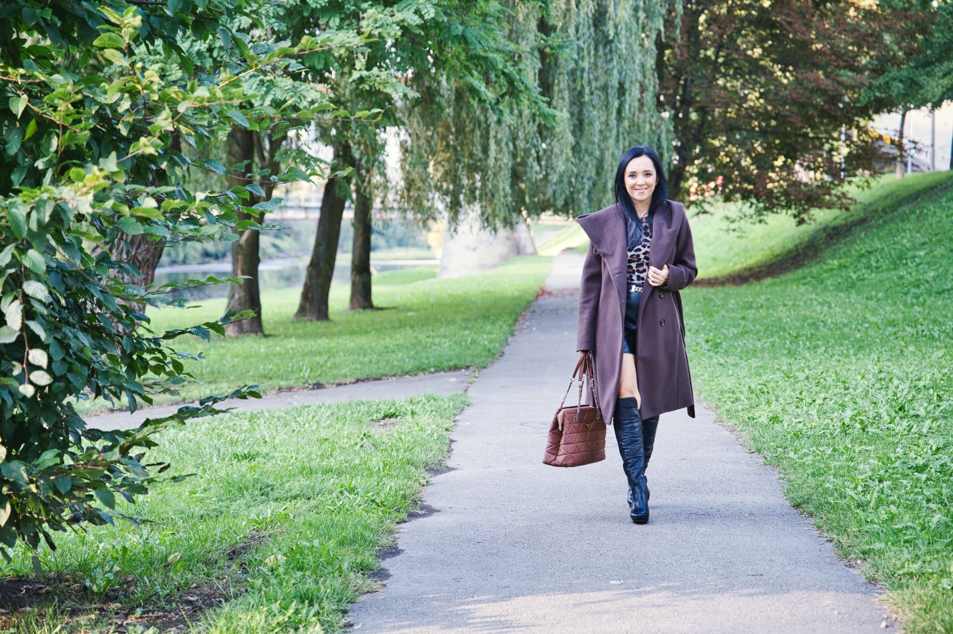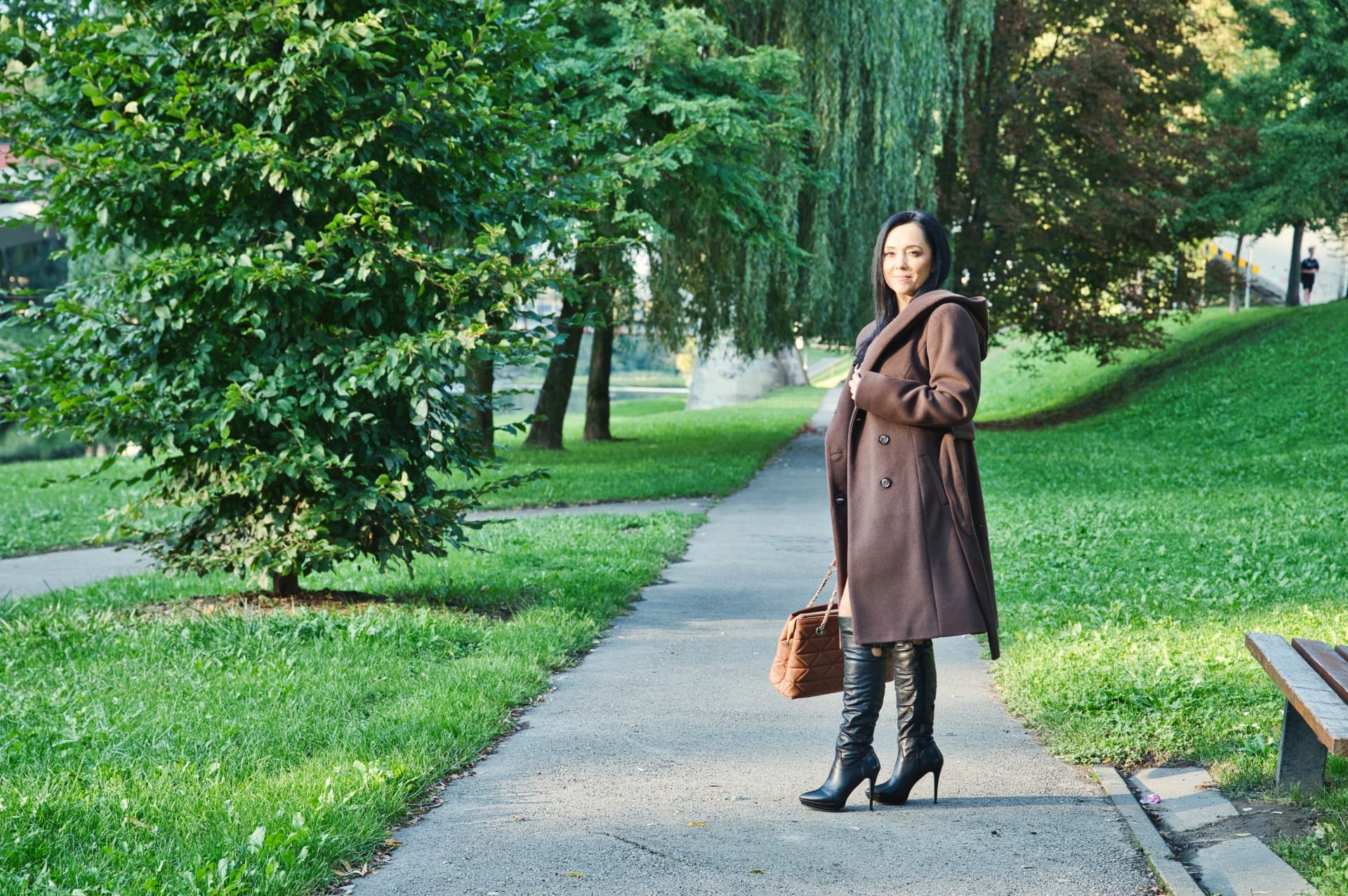 Płaszcz jesienno-zimowy w kolorze czekoladowym, stworzony dla kobiet ceniących elegancję i swobodę, idealny na chłodne dni, gdy pragniemy wyglądać stylowo, nie rezygnując z wygody.