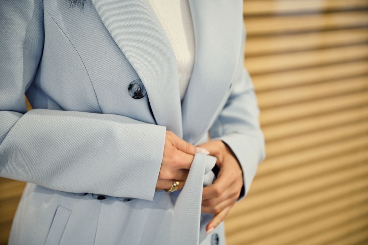 🔹 Żakiet – krótki, zapinany na dwa guziki, podkreślający talię