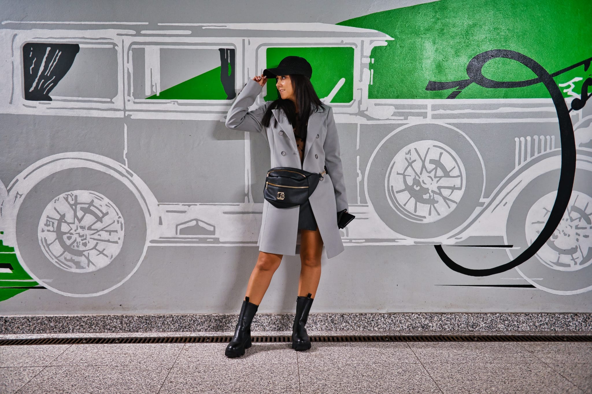 Szary płaszcz w minimalistycznym stylu to uniwersalny element garderoby, który łatwo zestawisz z różnymi kolorami i fakturami.